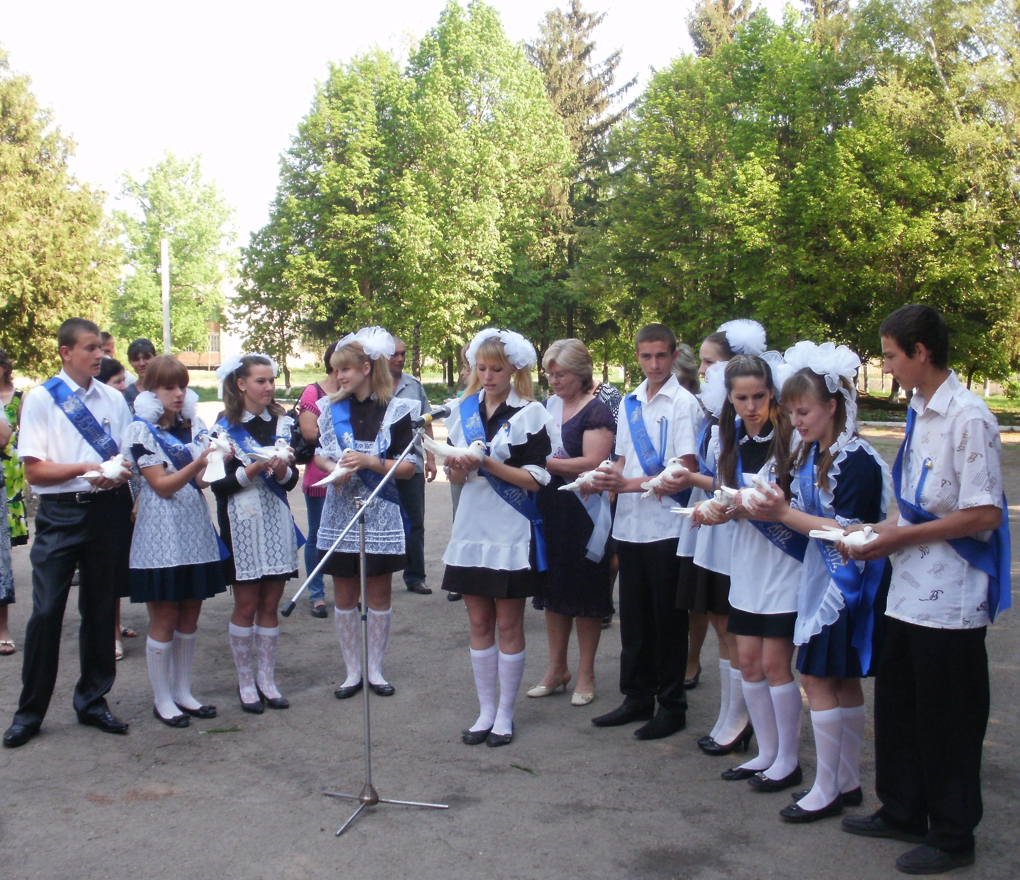 3 травня відбулося свято останнього дзвінка для випускників школи. Для десятьох одинадцятикласників дзвінок, що так мелодійно прозвучав у руках Торчило Валерії учениці першого класу, сповістив про те, що пора дитинства для найстарших учнів скінчилась. Попереду – державна підсумкова атестація, випускний і такий бажаний атестат про середню освіту, а там і доросле, самостійне життя! Під вишитими маминими рушниками проводжала рідна школа своїх вихованців в добру путь!